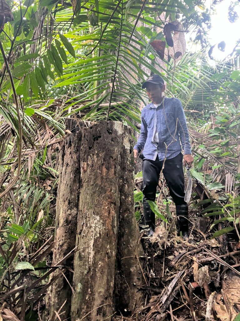 According to Jeffery Nang, the village chief of Rumah Jeffery, in May 2022 Zedtee’s forest manager visited their longhouse. Nang said that the forest manager told him of the company’s plan to log the area but promised compensation in the form of a paved access road and water pipes for the village. In addition, he said each family in the community could mark five trees that Zedtee would spare from logging operations.